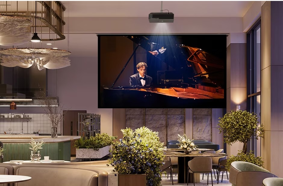 The LG ProBeam BU70QGT is a high‑performance professional laser projector designed for large‑screen presentations and digital signage, offering 4K UHD (3840 × 2160) resolution and 7,000 ANSI lumens brightness, ensuring sharp, vivid imagery that remains clear even in bright indoor environments such as lobbies, boardrooms, and educational spaces.