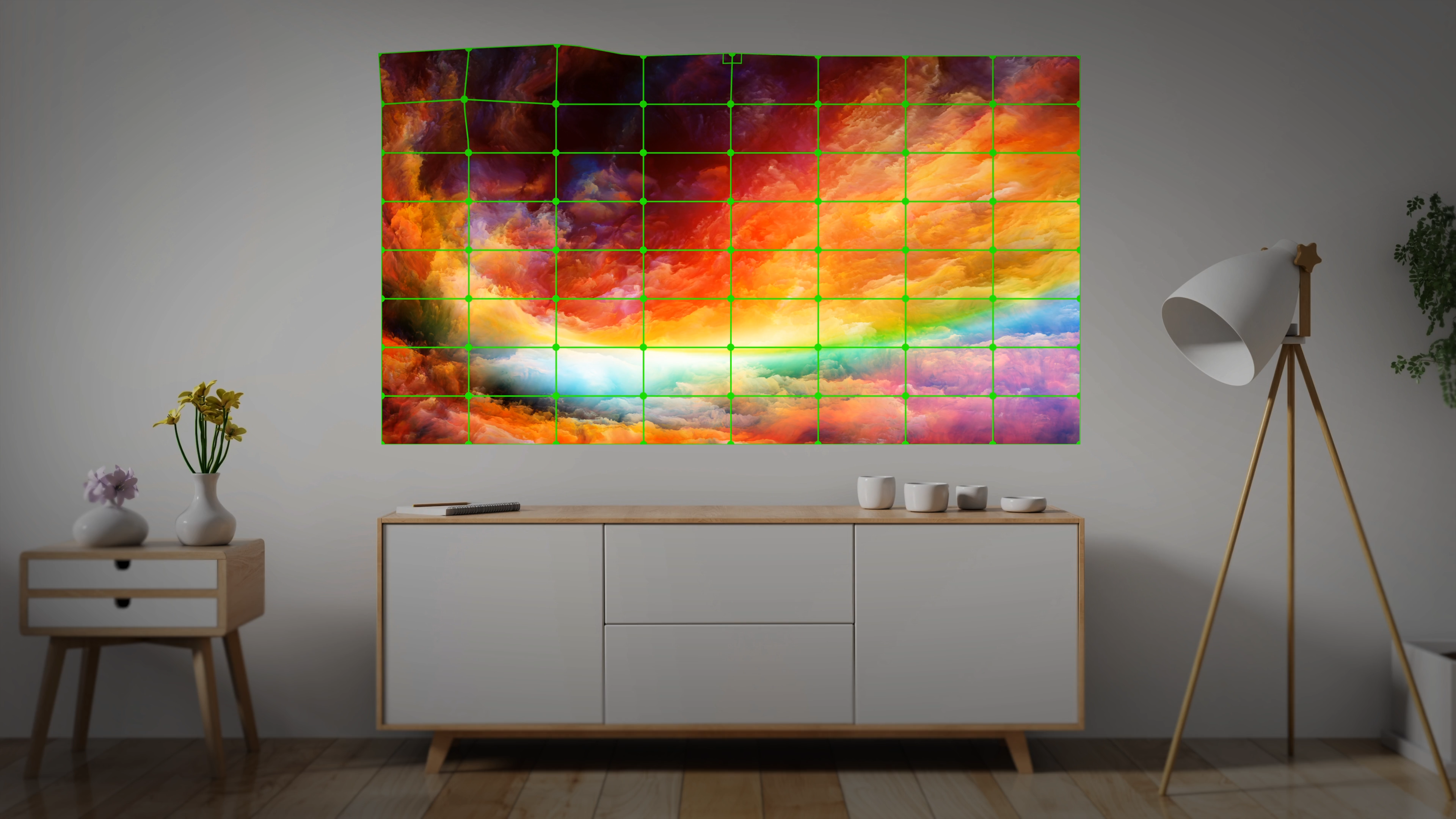 Adjust individual points to get the image perfectly square using the advanced built-in geometric correction tool. Ideal if you are not using a screen and have an uneven wall you want to project onto.