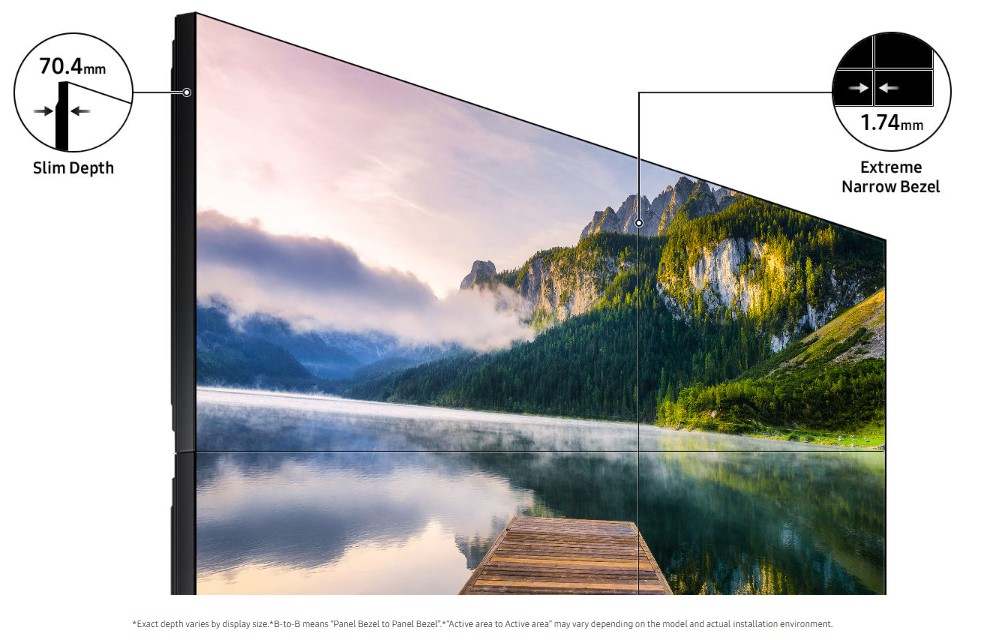 The exceptionally thin 69.9mm* cabinet depth provides businesses with more flexibility to create the exact video wall they need and install it in the most impactful location. The thoughtful design blends in seamlessly and transforms any location with powerful visuals.